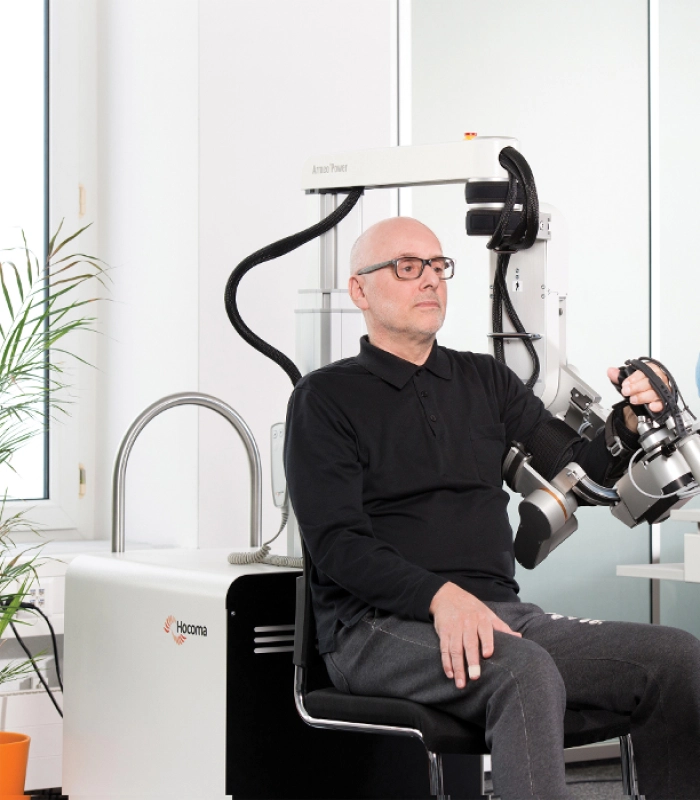 Le ARMEO Spring est un dispositif de rééducation robotisé conçu pour aider les patients à retrouver la mobilité et la force des bras et mains. Grâce à son système à ressorts ajustables, il offre une assistance légère et progressive, permettant aux patients de réaliser des mouvements naturels tout en réduisant la fatigue. Ce dispositif favorise un entraînement fonctionnel, motivant et personnalisé, adapté aux besoins individuels. Le ARMEO Spring est idéal pour la rééducation post-AVC ou neurologique, combinant confort, sécurité et efficacité pour un suivi optimal des progrès.