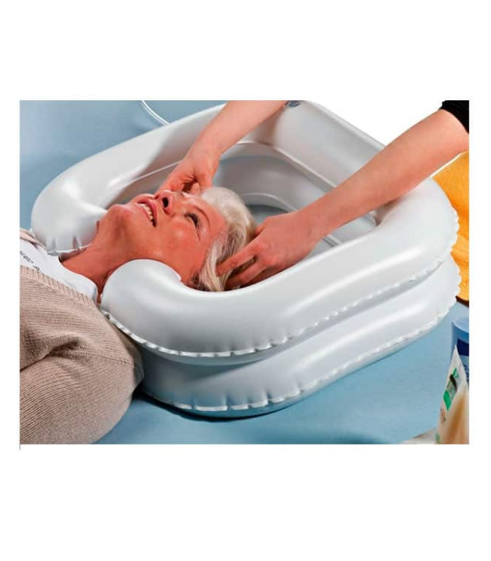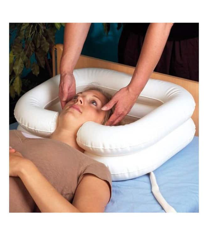 • Cuvette gonflable permettant un shampooing facile pour les personnes alitées