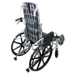 La conception du fauteuil inclut des repose-pieds ajustables et amovibles, des accoudoirs rabattables, ainsi que des roues arrière anti-basculement et freins de sécurité pour garantir un usage sûr en intérieur comme en extérieur. Sa fonctionnalité inclinable jusqu’à 90° le rend pratique pour les soins, la récupération ou le repos prolongé.